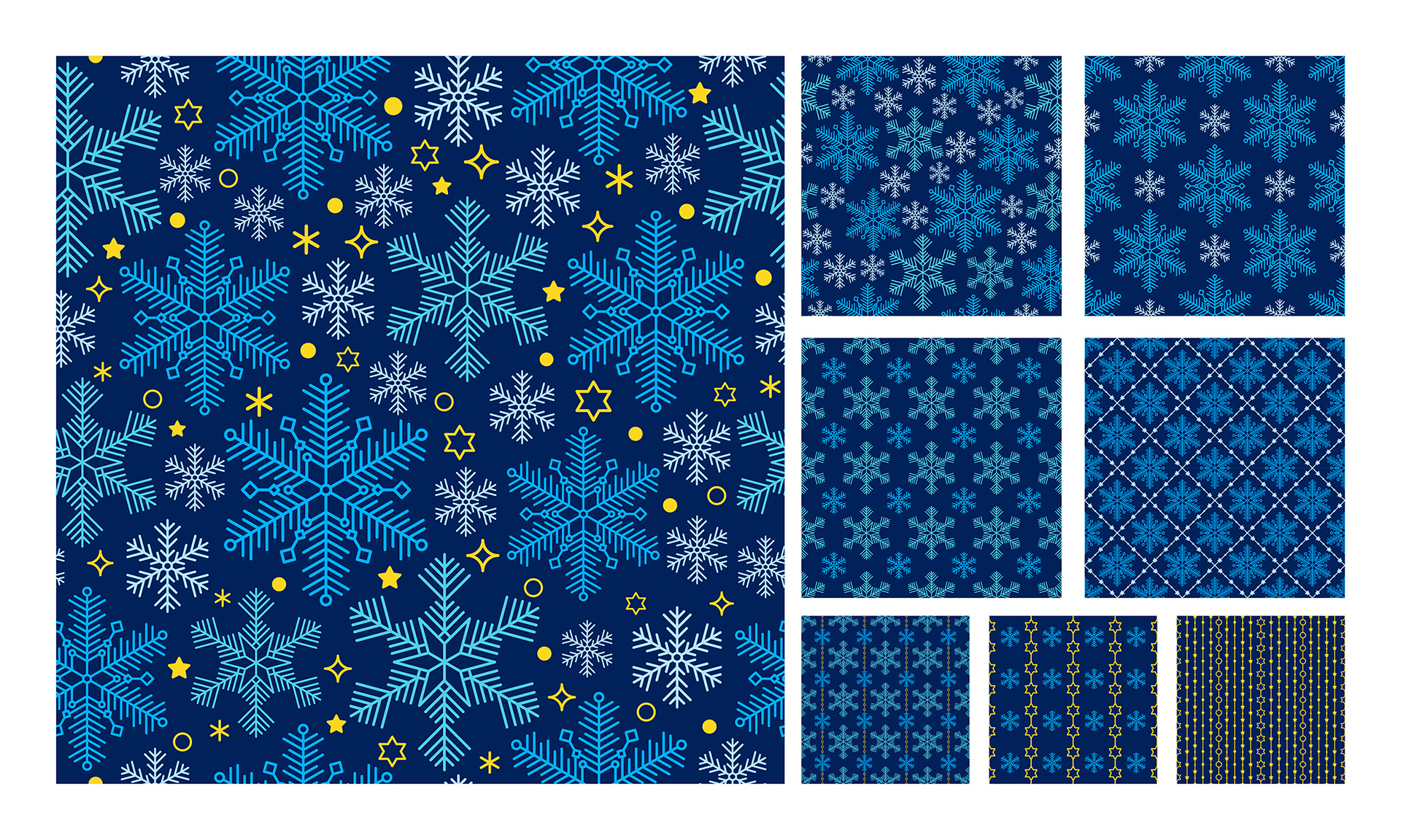 This winter pattern collection with snowflakes was created for textile design, wallpaper, package.